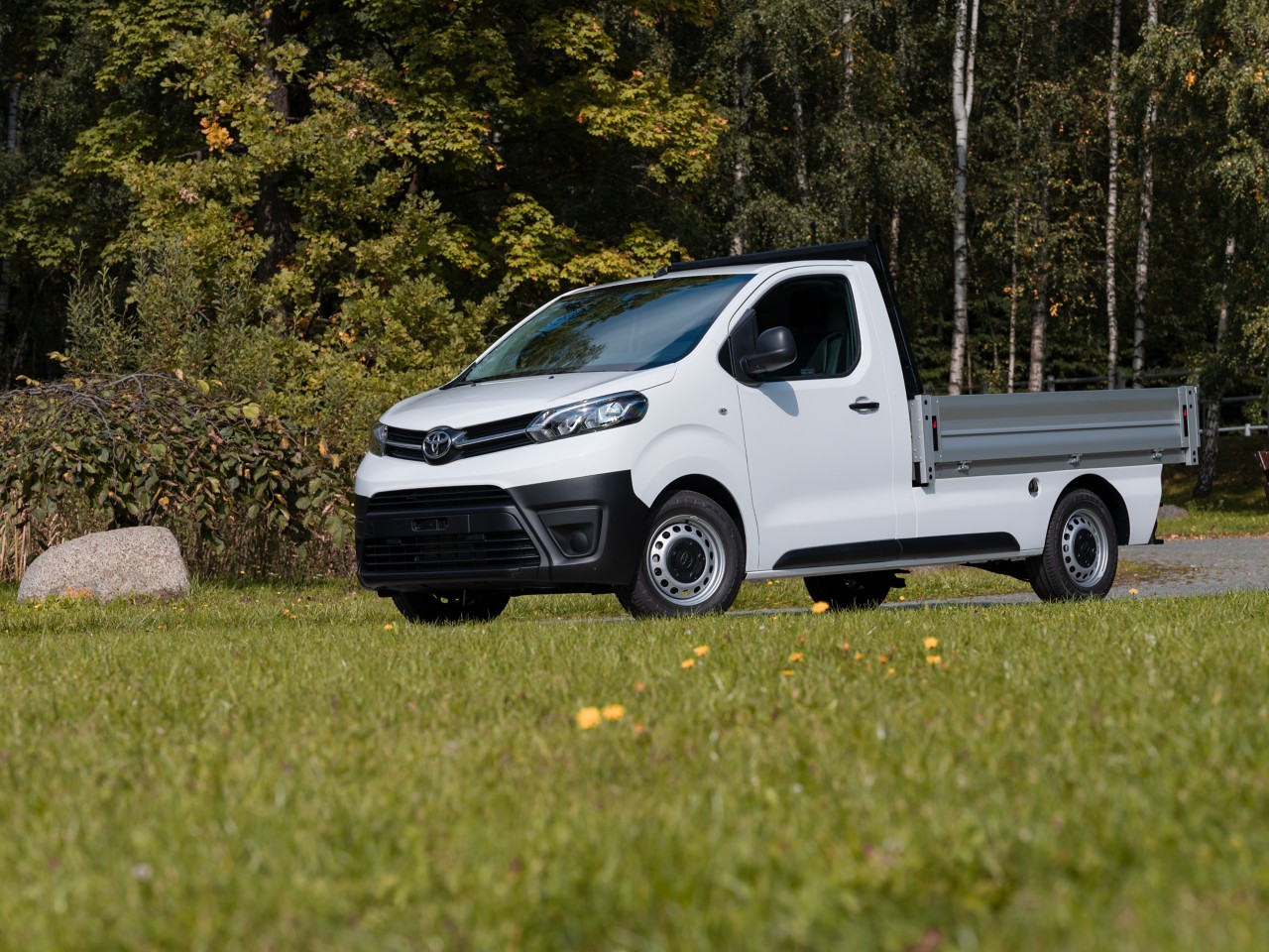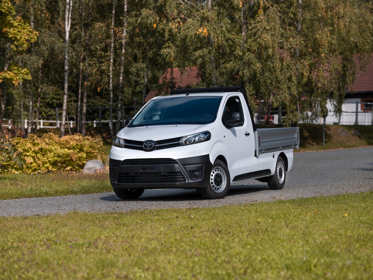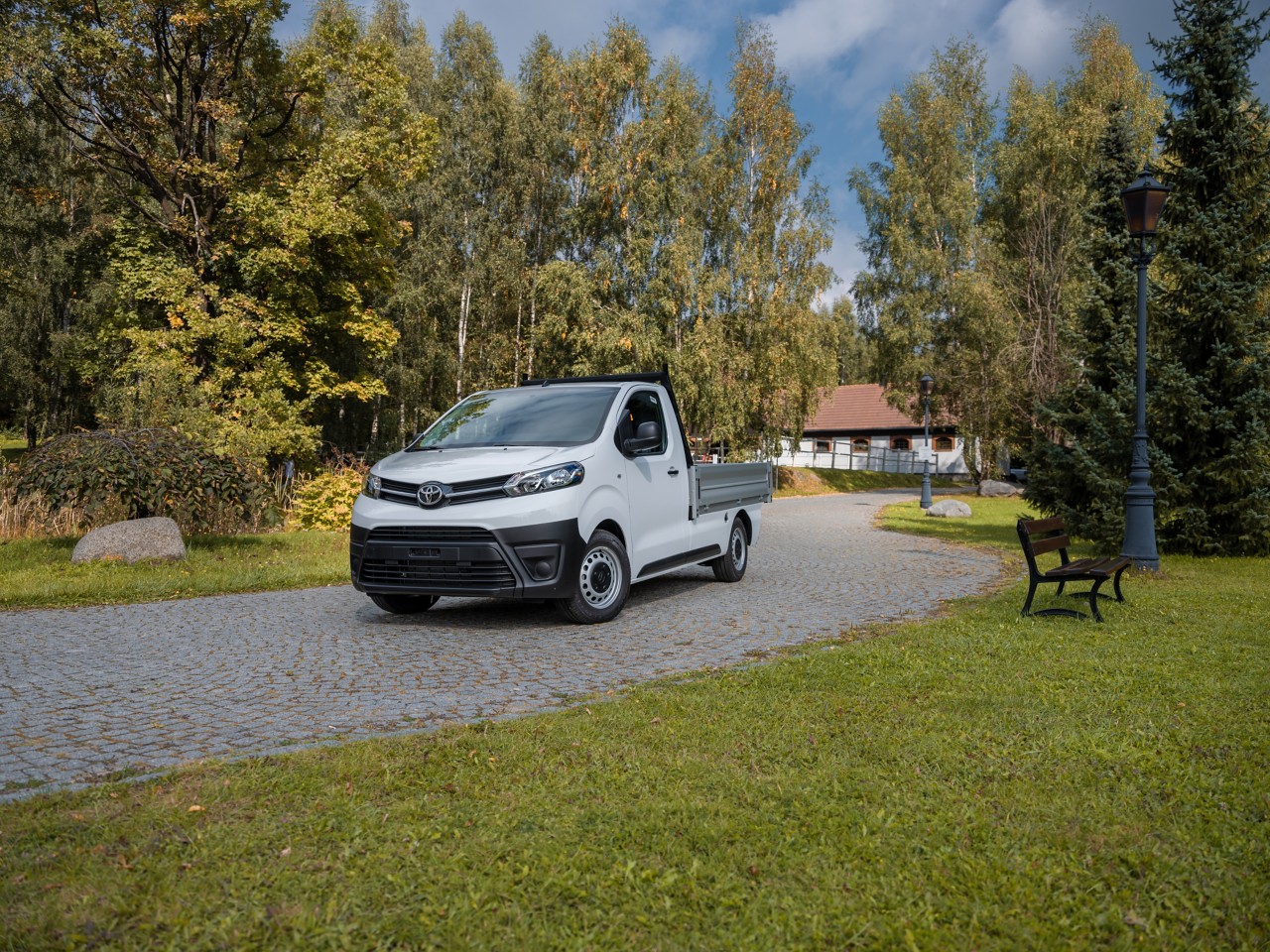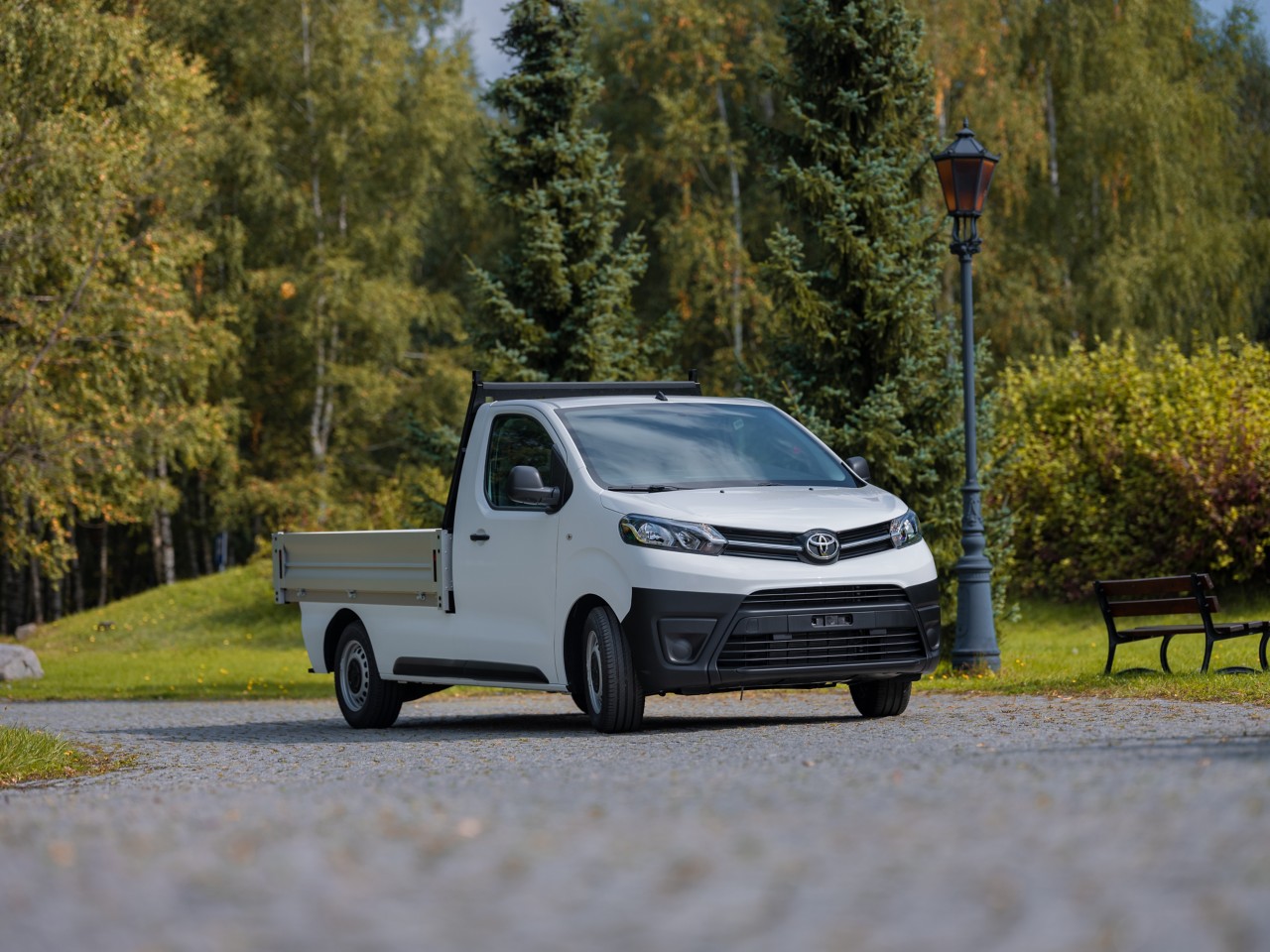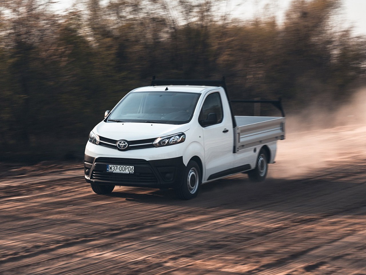 Toyota PROACE Platforma to pojazd, który może pochwalić się świetnymi warunkami do pracy. Wydajny silnik Diesla o pojemności 2 litrów i mocy 144 KM, wysoka ładowność do 1100 kg, solidna rama pośrednia stanowiąca wytrzymałą podstawę do montażu skrzyni ładunkowej o powierzchni 4,8 m2 – robią wrażenie.