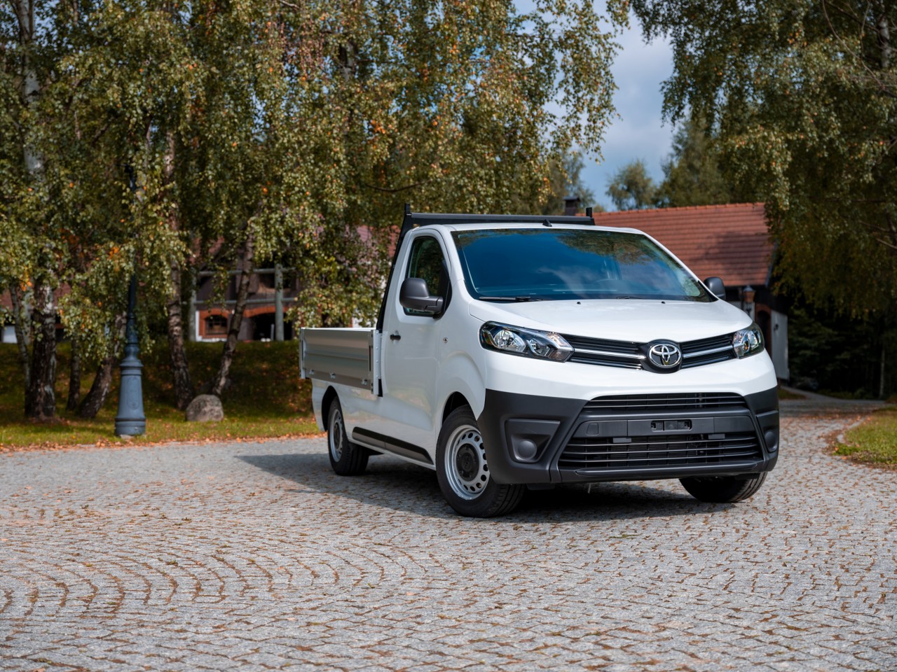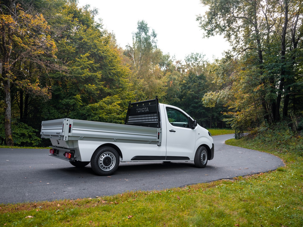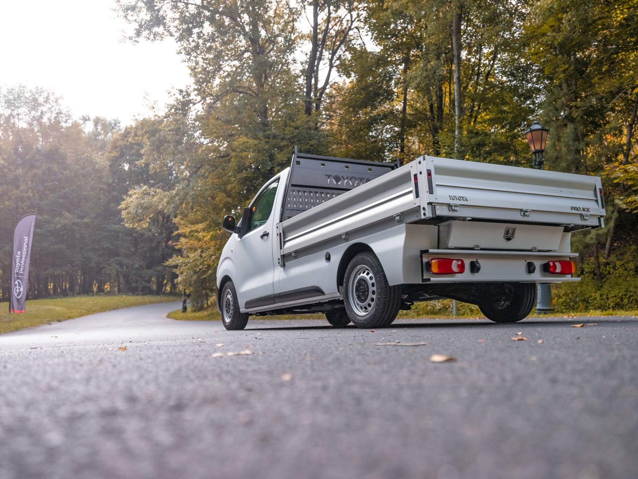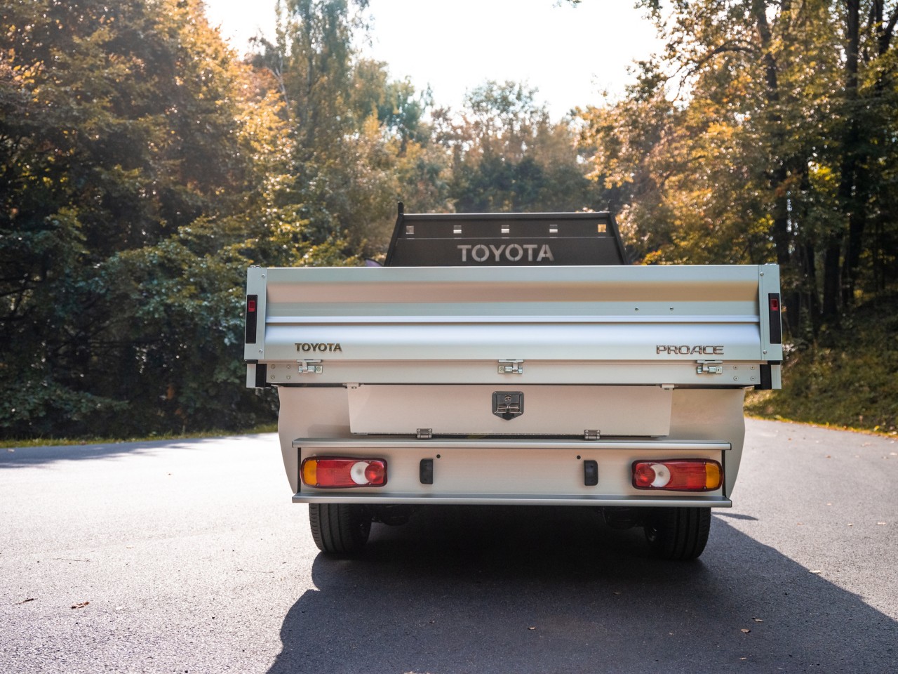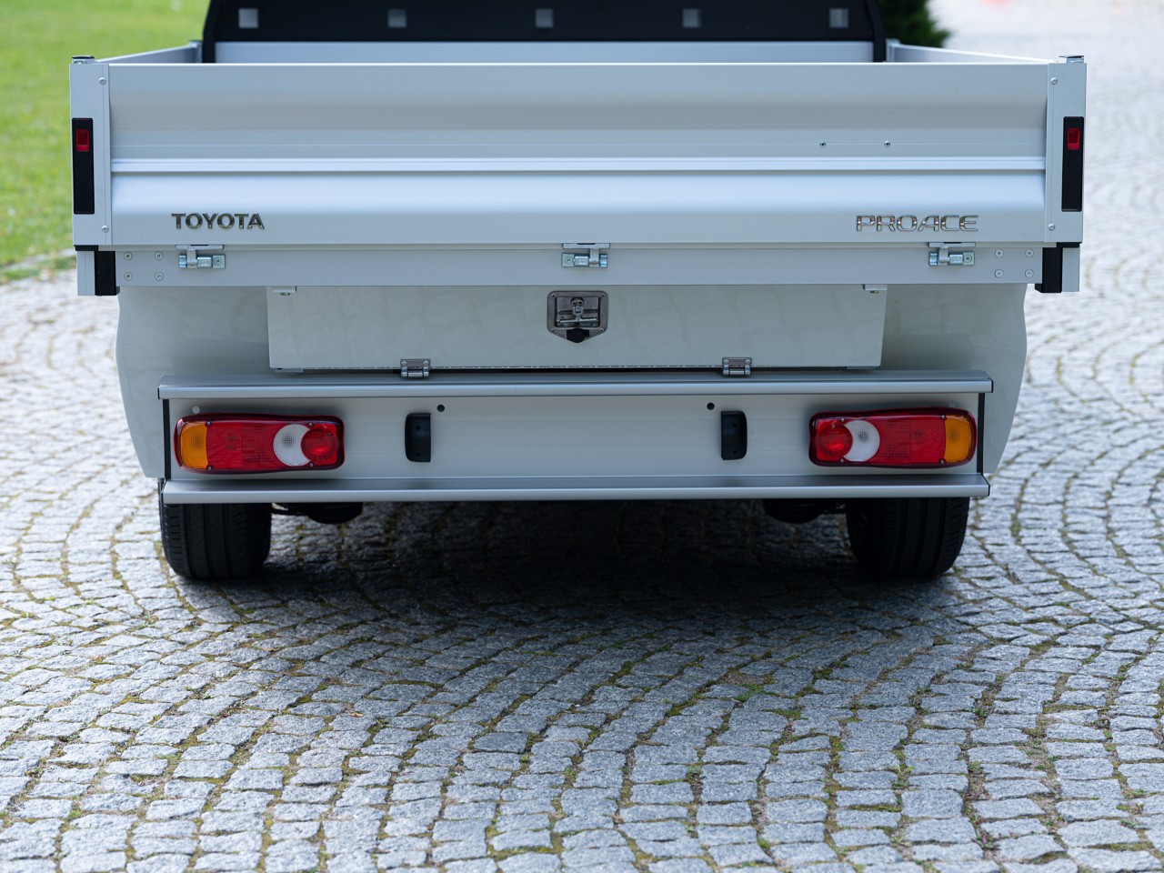 Skrzynia ładunkowa Toyoty PROACE Platforma posiada lekką aluminiową konstrukcję, co wpływa także na niższą wagę całej zabudowy. Podłoga jest wykonana z wodoodpornej sklejki o grubości 15 mm z warstwą antypoślizgową, a burty o wysokości 350 mm są wyposażone w zamki kasetowe zapobiegające samoczynnemu otwarciu.