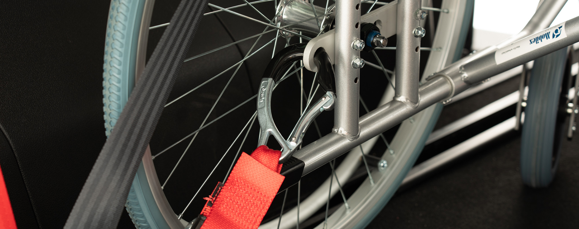 • 3-punktowy pas bezpieczeństwa dla osoby na wózku inwalidzkim