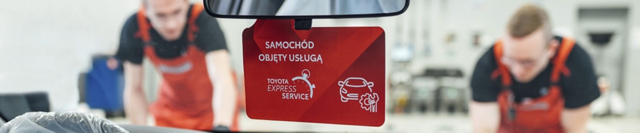 *Czas potrzebny na wykonanie przeglądu w opcji Express Service nie obejmuje czasu potrzebnego na przeprowadzenie prac zleconych dodatkowo przez Klienta oraz prac wykraczających poza zakres czynności obsługowych określonych w Instrukcji obsługi pojazdu. Dostępność usługi Express Service może być różna w zależności od Stacji Dealerskiej, oferującej usługę. Usługa Toyota Express Service nie stanowi oferty w rozumieniu Kodeksu Cywilnego. Szczegóły usługi Toyota Express Service dostępne są u wybranych Autoryzowanych Dilerów Toyota Central Europe w Polsce. Przedstawione grafiki pokazują poglądowo przebieg przeglądu w opcji Express Service w autoryzowanej stacji dilerskiej: Toyota Wrocław Bielany Wrocławskie, ul Czekoladowa 10